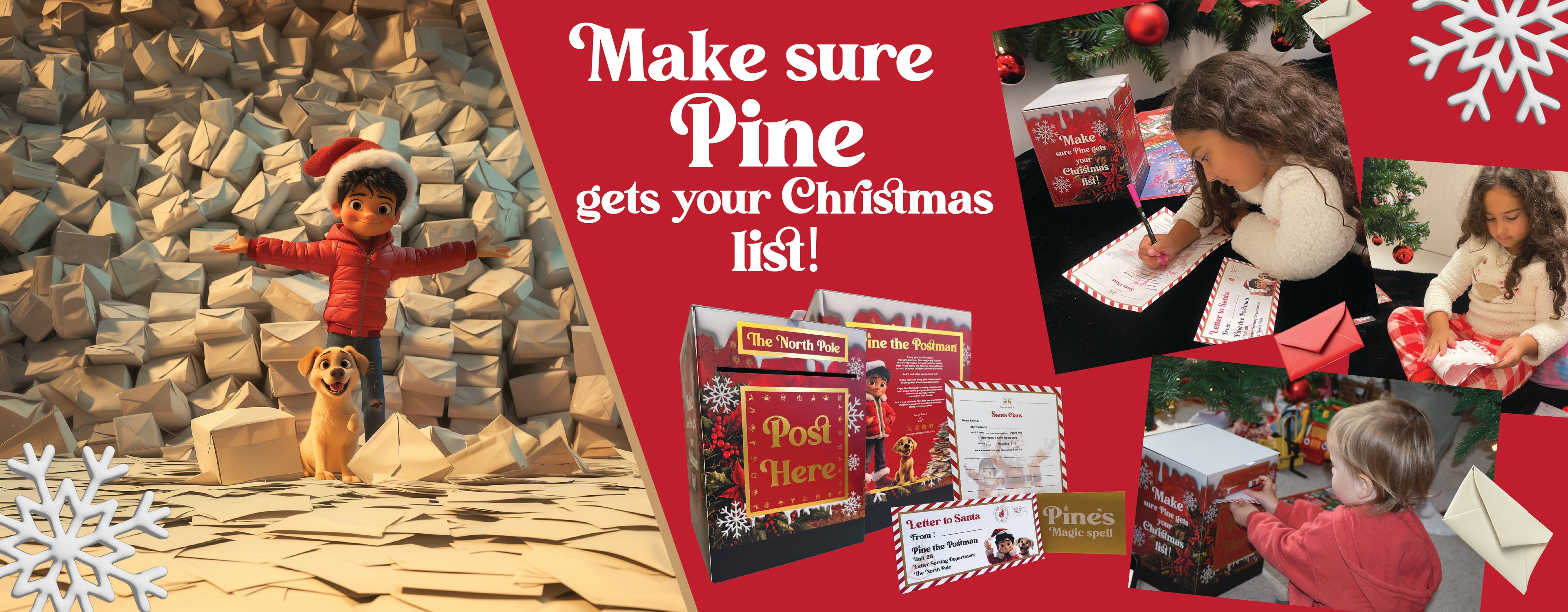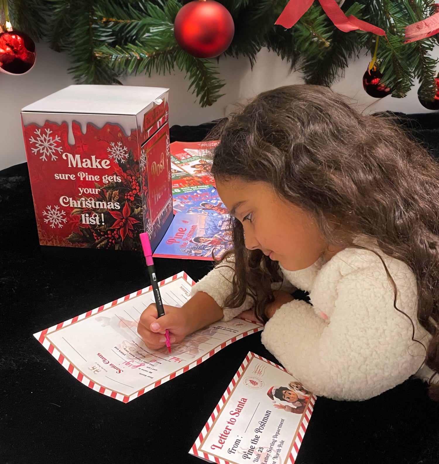 Help your child write their Christmas list and prepare it for Pine to deliver to Santa. After your child places the letter in the postbox, Pine will "pick it up" overnight and whisk it off to the North Pole! It’s an easy and magical way to keep the tradition of writing to Santa alive.